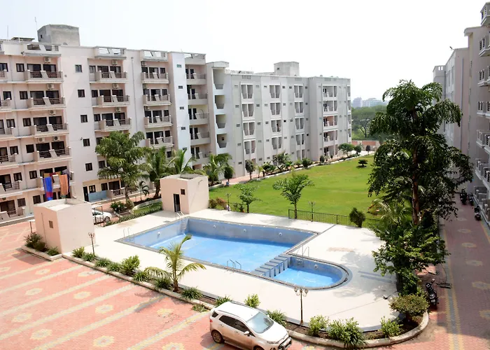 The comfortable 2-star Sai Sharnam Serviced Apartments Shirdi hotel, located within a 4-km distance of the Sai Teerth Theme Park Shirdi, offers an indoor swimming pool and Wi-Fi in public areas.